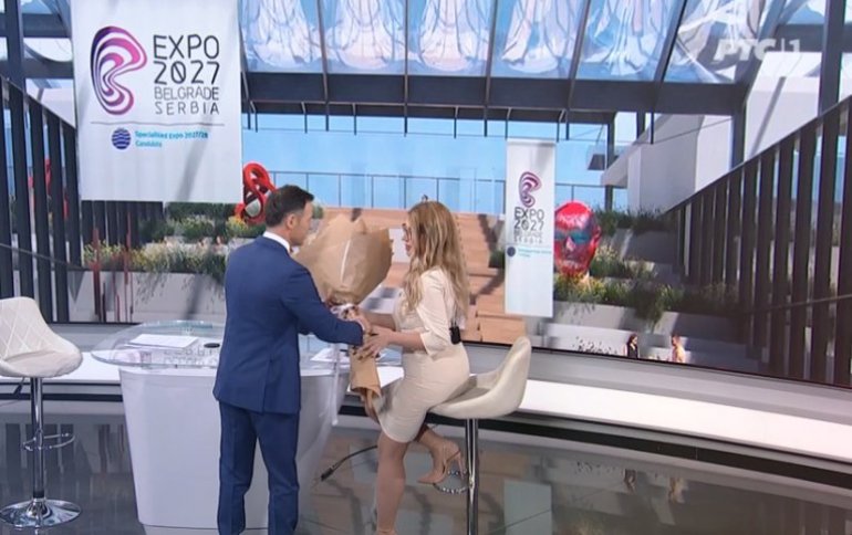 На крају, министар је водитељкама днегвника поклонио цвеће за 8. март.