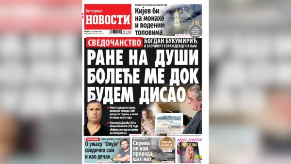 NEDELJNE "VEČERNJE NOVOSTI" SUTRA DONOSE: Bogdan Bukumirić o zločinu u Goraždevcu - "Hoće li mi ikad zaceliti rane na duši"