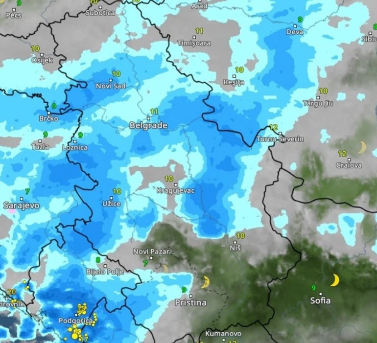 Prema prognozi radara, sutra uveče očekuje se jaka kiša koja će zahvatiti skoro celu Srbiju.