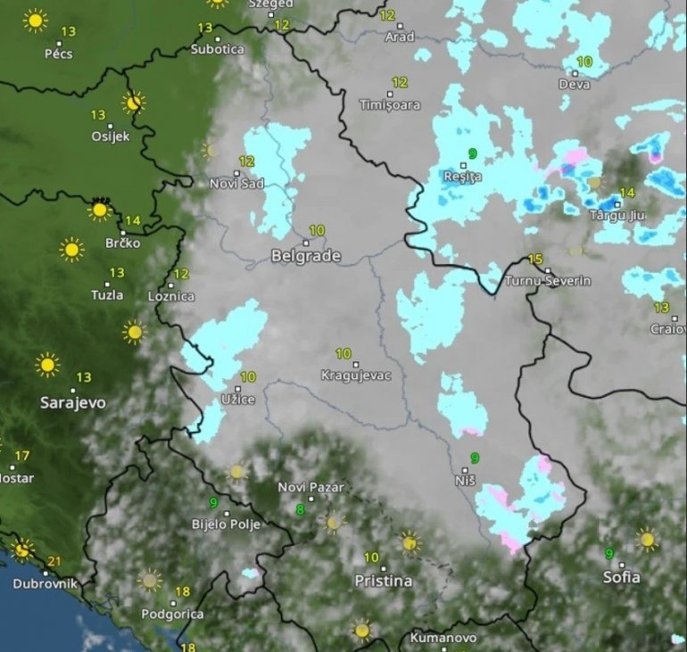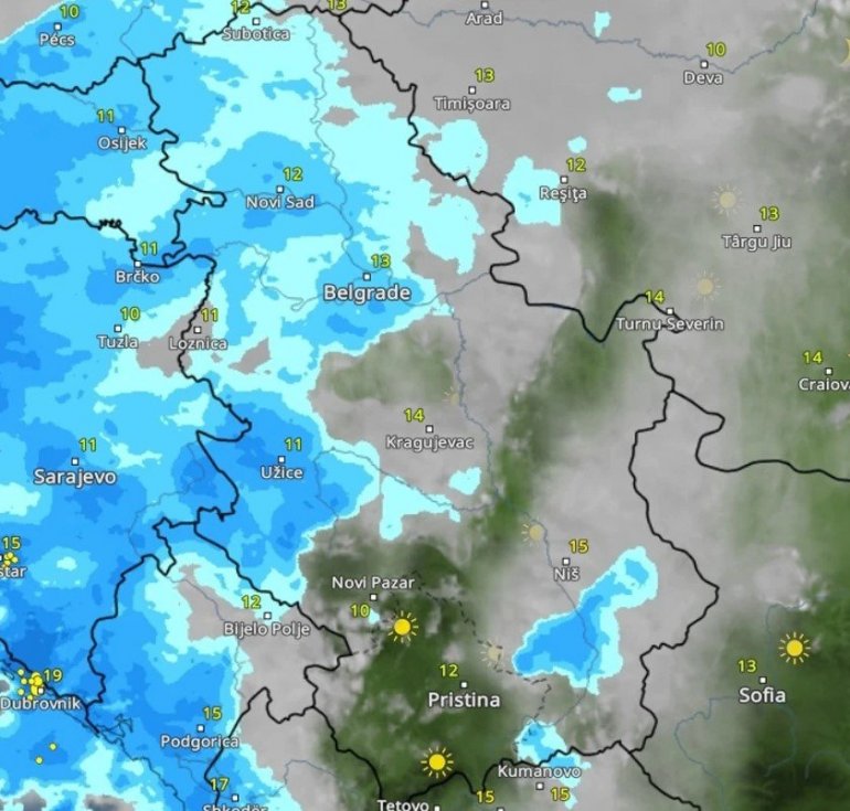 Kako se vidi na radarskim snimcima sajta "Vreme i radar", kiša će padati od danas pa sve do srede, dok će je povremeno prekidati periodi oblačnosti.