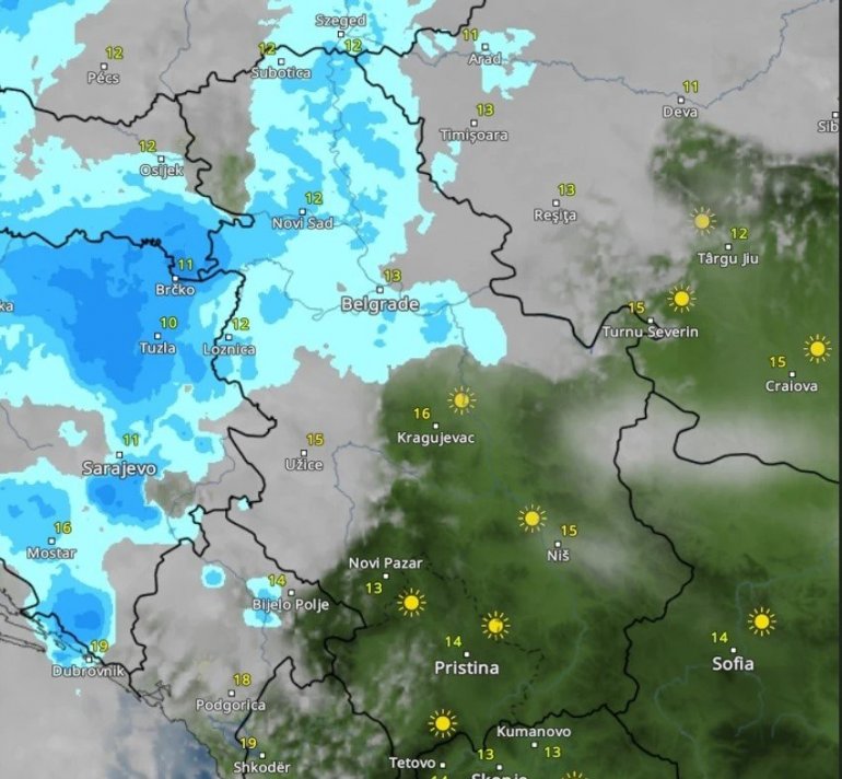 U Beogradu će biti nešto toplije nego danas, te se očekuje maksimalna dnevna temperatura od 15 stepeni, a kiša će nastaviti da pada.