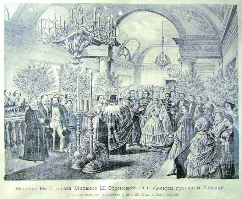 KNEZ Mihailo Obrenović očito je pristao na neiskren brak, ,,zaleteo“ se, pomalo, ulazeći u sve to - da bi ostvario sebe kao nekakvog aristokratu u carskoj Vijeni i potvrdio svoj status u visokom društvu. Pre Julije, Mihailo se u Beču dugo ,,gledao“ sa Marijom fon Lihtenštajn, vanrednom lepoticom koja mu je na svečanostima uzvraćala poglede i osmehe, a on njoj pisao stihove („Prvi pogled oka tvoga, sjajnom suncu podoban, plenio je srce moje, učinio robom ga“), ali se njen otac raspitao za tog ,,skorojevića“, saznao da ima vanbračnu decu i „sumnjivo bogatstvo" i sprečio svaku dalju priču. Tako je Mihailo, koji je društveno ponizio jednu Mariju (Berkhaus), doživeo da ga posle četiri godine društveno ponizi druga Marija, makar i odlukom svog oca. Nastavio je da se „bori sa mislima svojim“ i tuguje (,,jer tvoj biti ne mogu“) i tada se, kao za utehu, zbližio sa Julijom, devojkom iz susedstva, kojoj njegovo bogatstvo nije bilo ,,sumnjivo“, već dobrodošlo. Vanbračni sin njoj nije predstavljao problem, pod uslovom da ona ne mora da brine o njemu, ali je zauzvrat ona imala jednog ,,prijatelja“, tek da Mihailu rasplamsa želju za nekakvim dokazivanjem, i on se tom dokazivanju odazvao. Dao je sve od sebe da potpuno osvoji njenu naklonost... U paru s njom osetio se konačno prihvaćenim u društvu kojem je težio. Grof Laslo Hunjadi, Julijin brat, zbog svega toga smatrao je taj brak od početka “bolesnim” i nije mu predviđao dug vek, što se, kako je sam rekao Karlu Paceku, inače pioniru zdravstvene službe u Kneževini Srbiji, na kraju i obistinilo.