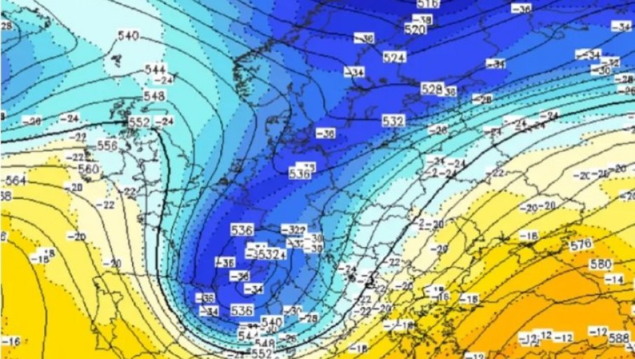 Polarni udar već je prodro preko centrlane Evrope i Alpa sve do Apeninskog i severozapada i zapada Balkanskog poluostrva.