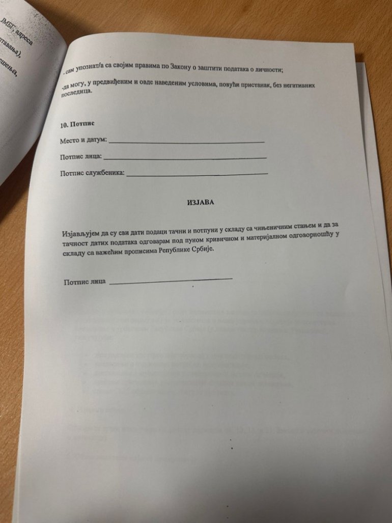 Reč je o obrascu koji služi za davanje pristanka zaposlenom u JP "Pošta Srbije" i JLS da, u ime podnosioca zahteva, unese njegove podatke o ličnosti u Digitalnu platformu za sprovođenje postupka evidentiranja nepokretnosti.