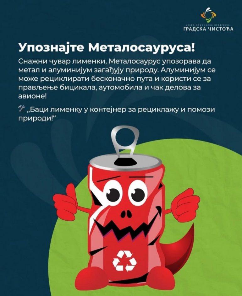 Naime, u okviru rada  Odeljenja za ekološku edukaciju i informisanje , „Gradska čistoća“ je  za najmlađe sugrađane obezbedila još jedan ciklus animiranih filmova sa omiljenim likovima najmlađih Beograđana, „Reciklosaurusima“, koje inače svakodnevno mogu videti i na brendiranim vozilima ovog javnog komunalnog preduzeća, koje posvećeno brine o higijeni prestoničkih ulica.