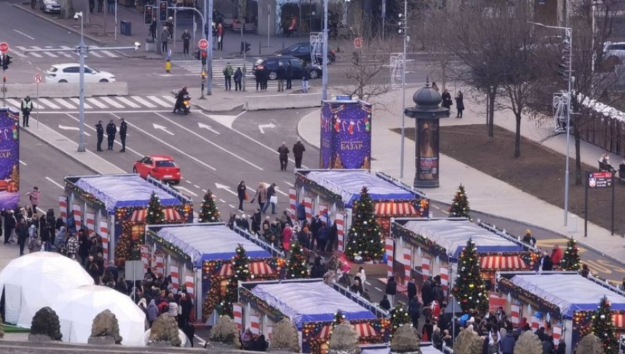 NA PLATOU ispred Narodne skupštine nalaze se okićeni štandovi s raznim ponudama za Beograđane koji tokom ovih neradnih dana, za praznike, dolaze da se prošetaju sami ili sa decom.