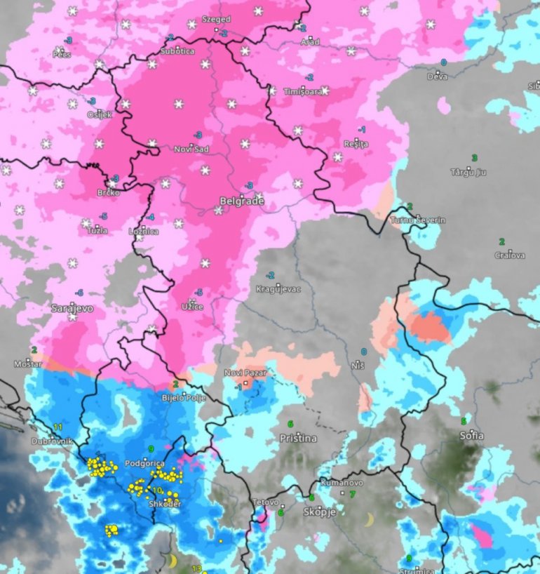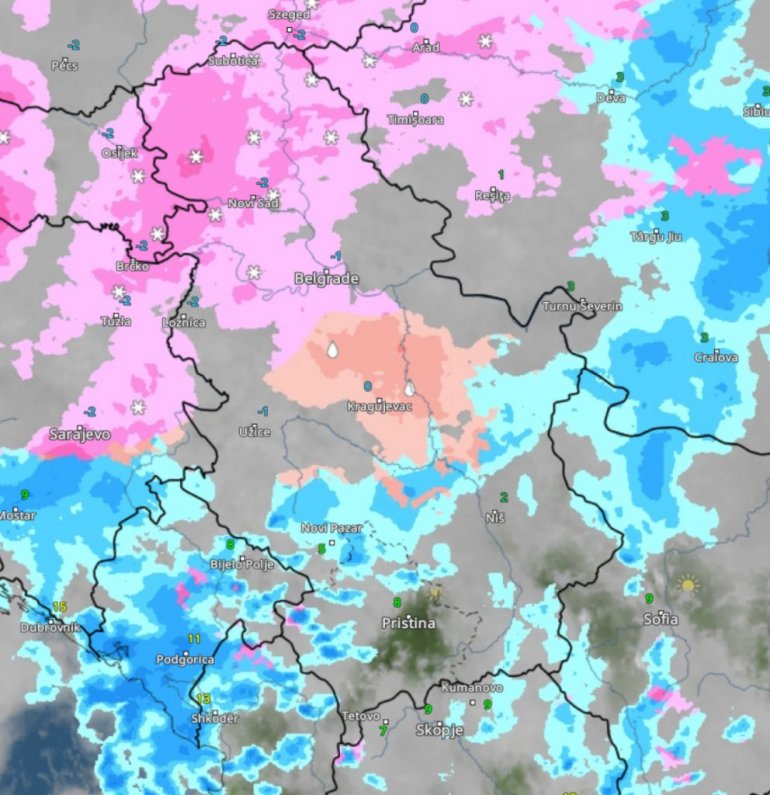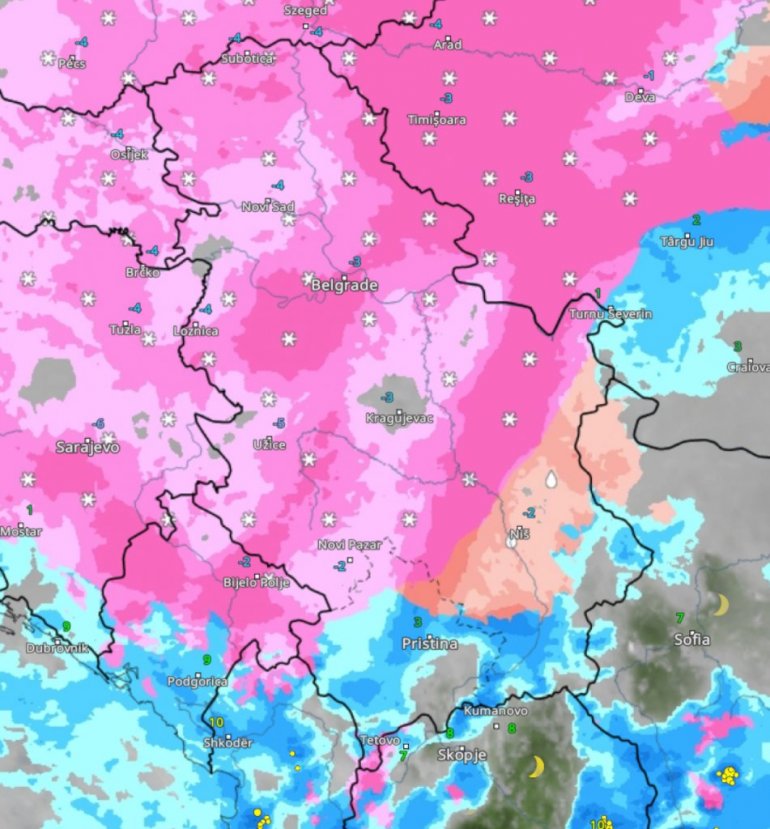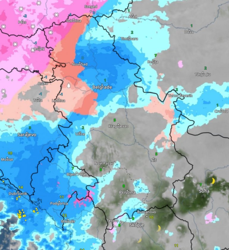U severnim predelima Vojvodine vejaće sneg, a kiša će pljuštati na jugu i jugoistoku Srbije, uz sneg tek na višim planinama iznad 2.000 metara.