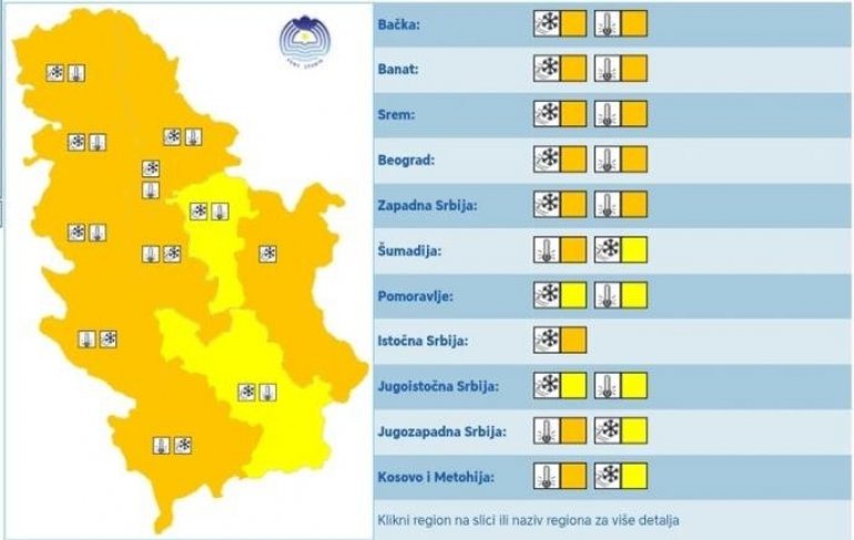 Najkritičniji period očekuje nas sutra, kada će se veći deo zemlje suočiti sa ekstremnim mrazem, dok će u Južnobačkom okrugu biti na snazi “crveni”, najviši nivo upozorenja. Uz niske temperature koje će se spuštati do -16 stepeni, meteorolozi najavljuju i opasnu ledenu kišu koja će dodatno otežati kretanje.