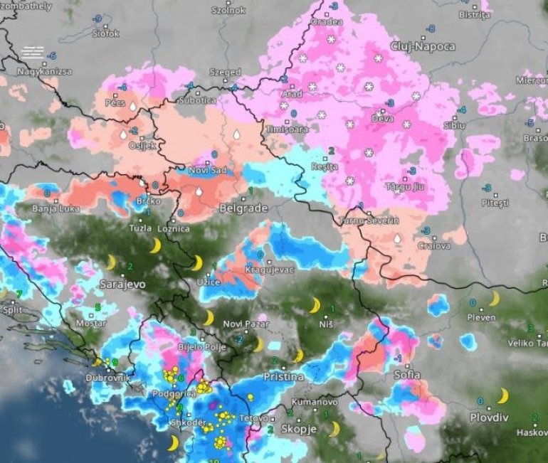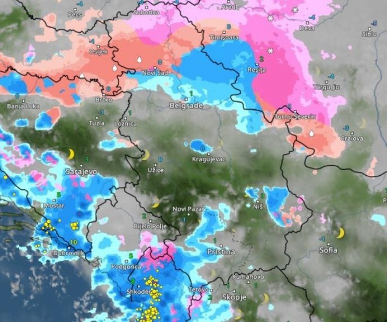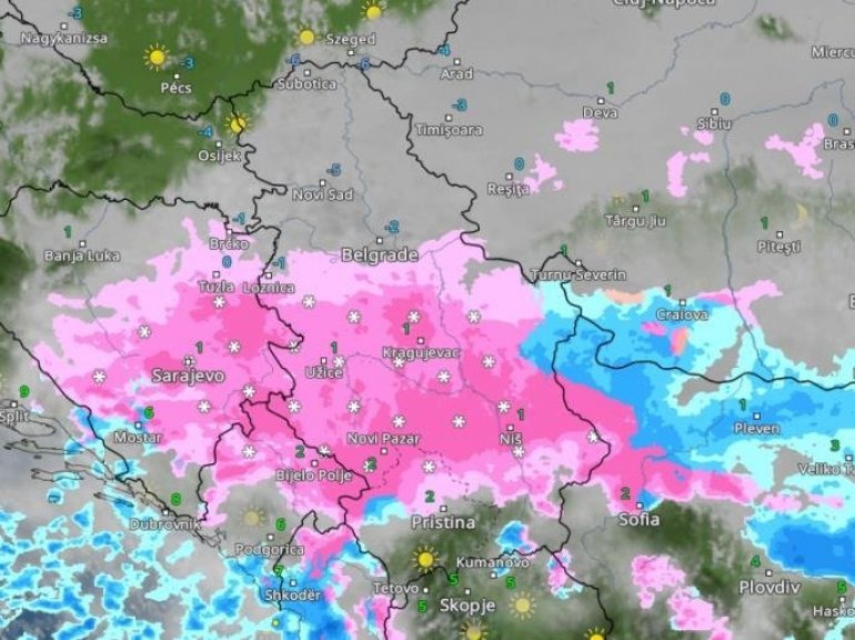 Ujutru i pre podne na severu i zapadu, a tokom dana i u ostalim krajevima očekuje se novo naoblačenje koje će posle podne usloviti mešovite padavine, sneg i kišu koja će se najpre u Vojvodini, zapadnoj i jugozapadnoj Srbiji, a uveče i tokom noći i na istoku zemlje mestimično lediti pri tlu.