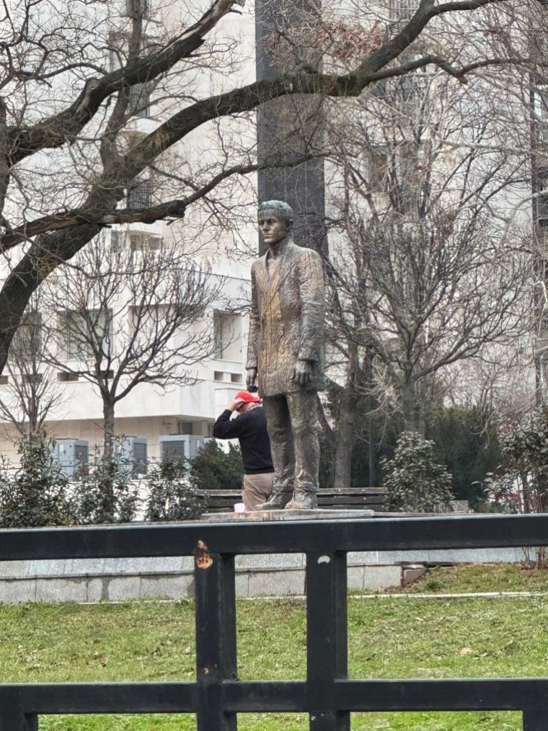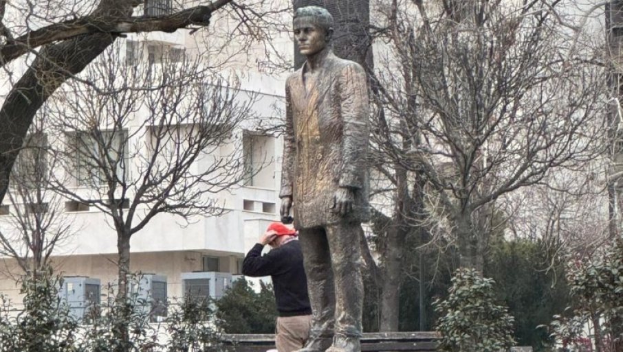 OČIŠĆEN SPOMENIK GAVRILU PRINCIPU: Skinuta crvena farba koju su prosule blokaderke NVO sektora (FOTO)