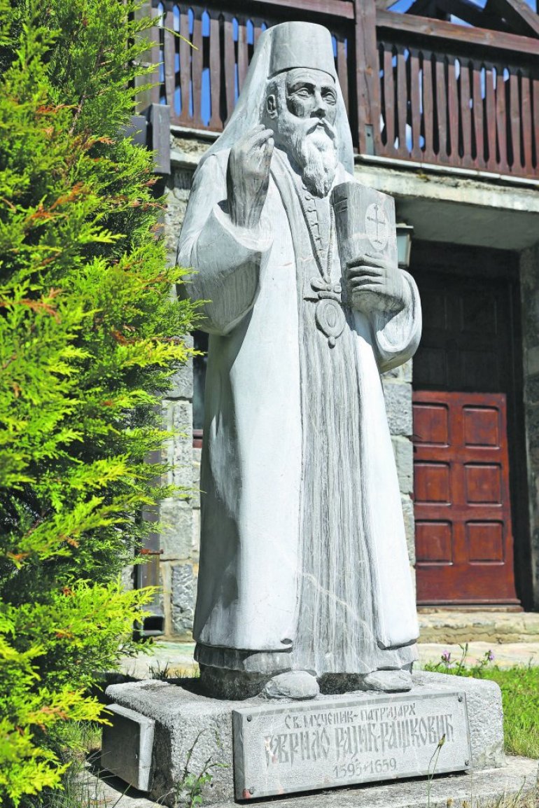 Spomenik srpskom patrijarhu Svetom Gavrilu ispred manastira Dubnica kod Nove Varoši