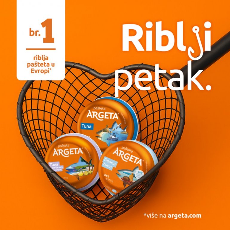 Petak uvek donosi posebnu vrstu zadovoljstva, jer najavljuje dane odmora. A od sada poslednji radni dan u nedelji postaje još bolji, jer Argeta predstavlja „Riblji petak“, koncept koji podseća sve nas da uvedemo kvalitetne proizvode i dobre navike u naš život. To znači da svakog petka uživamo u vrhunskom ukusu, kroz Argeta riblje paštete kao praktičan, kvalitetan i lagan obrok.
