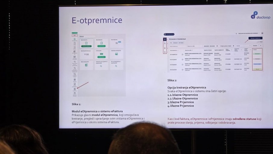 - E-otpremnica je elektronski dokument koji prati kretanje robe od pošiljaoca do primaoca. Ona sadrži sve podatke koje je do sada imala papirna otpremnica: ko šalje, ko prima, koja roba ide, u kojoj količini i kadaje predata. Razlika je u tome što se ovaj dokument više ne štampa i ne potpisuje rukom, već se razmenjuje kroz informacioni sistem države i ima pravnu snagu jednaku papirnoj verziji - rekao je Bojan, pa je dodao ko je u obavezi da je koristi i zašto: