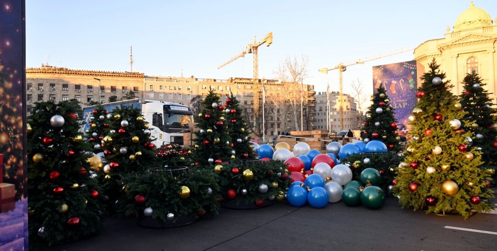 ŠATORE ISPRED NARODNE SKUPŠTINE ZAMENILI UKRASNI ŠTANDOVI I JELKE: Postavljeno Božićno selo, kako je najavio predsednik Vučić