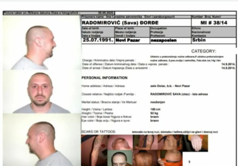 Tzv. kosovska policija, obavestila je javnost da je opasan muškarac, Đorđe Radomirović (34) iz Novog Pazara, pobegao iz zatvora u Severnoj Mitrovici 7. avgusta oko 15.45. Oni su tom prilikom apelovali na građane da u slučaju da ga vide, odmah obaveste policiju.