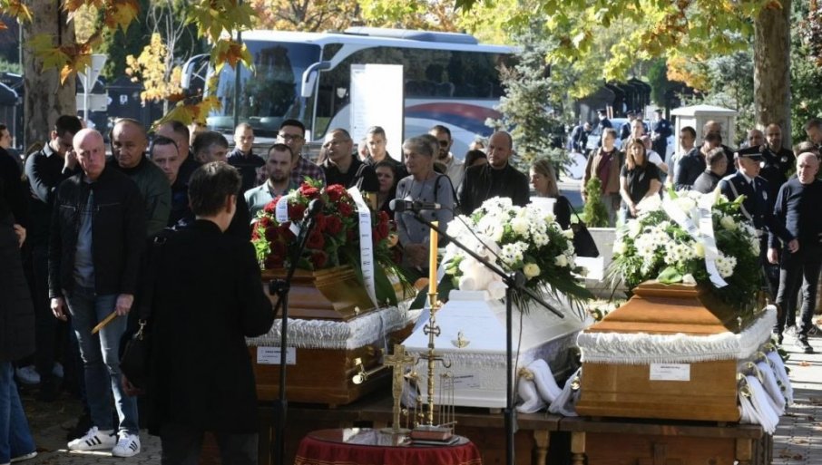 Veliki broj ljudi prisutan je na Novom bežanijskom groblju. Ulaze u kapelu kako bi izjavili saučešće članovima porodice nastradalih. Jauci i plač paraju nebo. Na sahrani je prisutan i ministar policije Ivica Dačić.