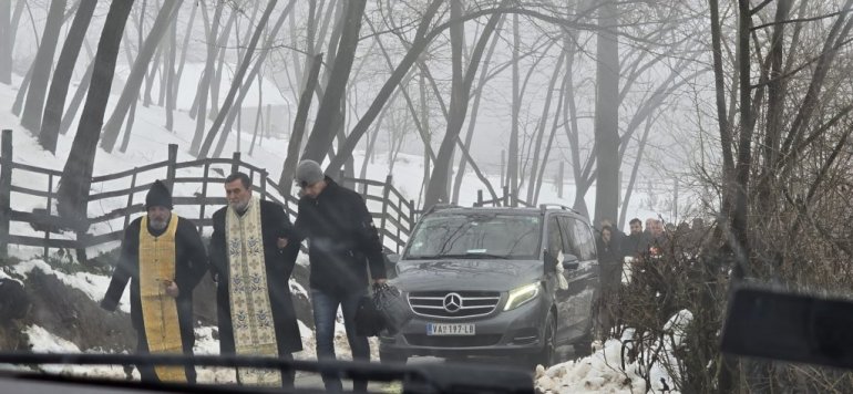 Sveštenik drži opelo na putu do groblja