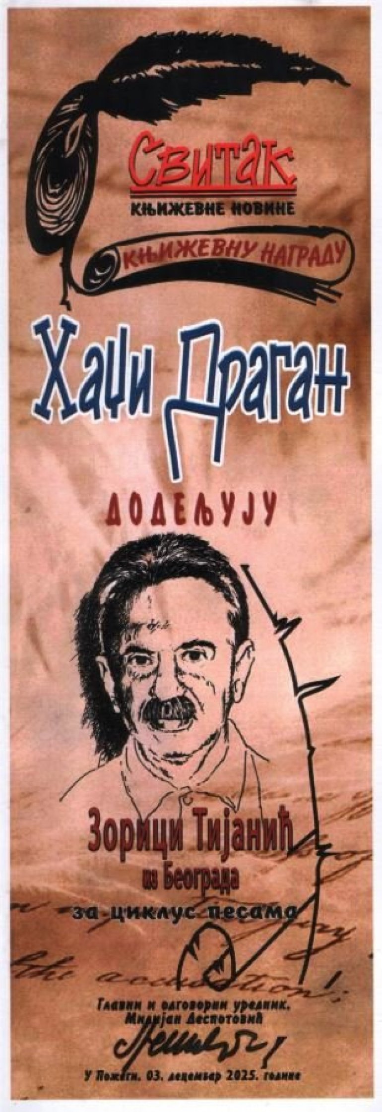 DODELJENA KNJIŽEVNA NAGRADA „HADŽI DRAGAN“ ZA 2025. GODINU