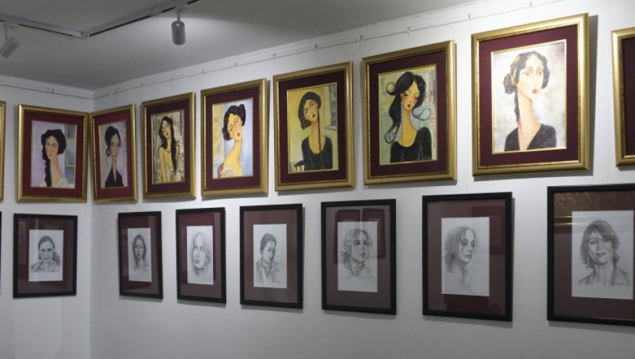 Jedan deo izložbe čine portreti inspirisani Amadeom Modiljanijem. Tako ih i zove "prema Modiljaniju". Na njima su žene sa dugim vratovima, u neobičnim pozama. Na većim formatima, u ulju, ima naravno i ruskih motiva. A kako kaže, nastavlja i dalje da traga...