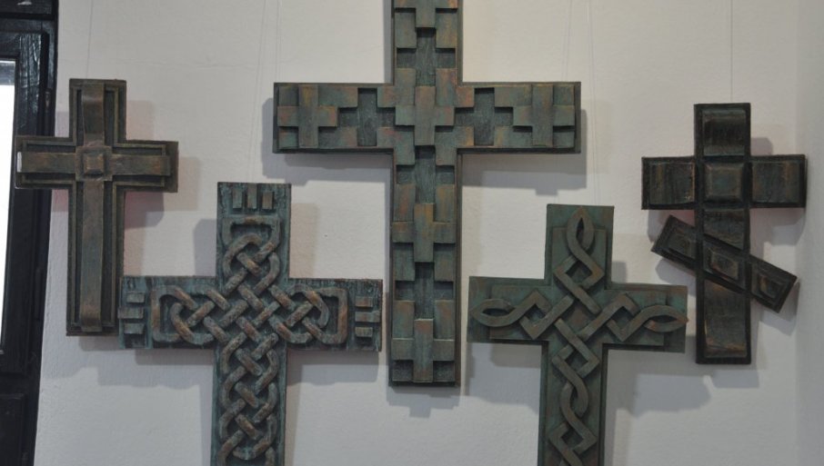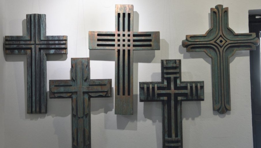 - Svi krstovi su unikatni, gipsani, koje sam uradio tako da liče na bakar, ili bronzu, preko koje se stvorila patina. Krst kao zadata tema od čijih osnova ne može da se odstupa je ipak - neiscrpna i vrlo inspirativna. Moguće je uraditi ga na milion načina, dati mu formu i pokret, koji nema ni jedan drugi, a opet da u osnovi predstavlja isto.
