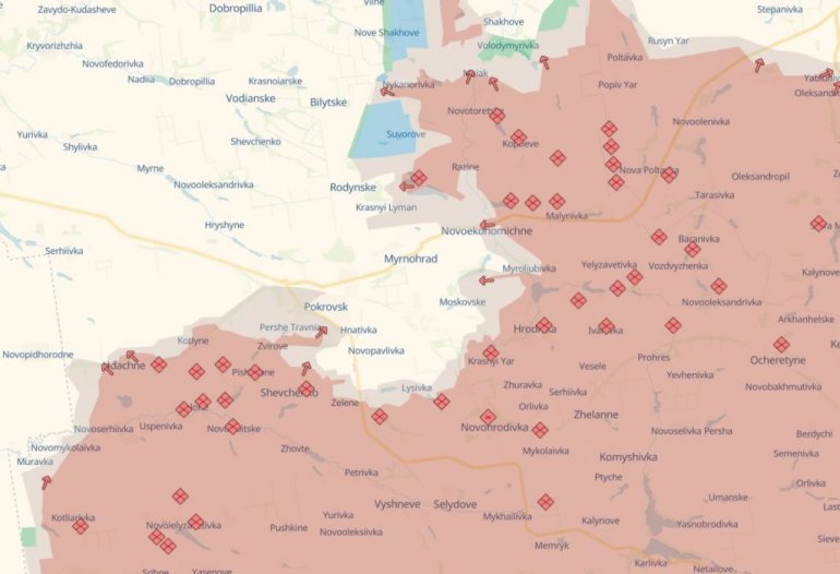Prema mapi ukrajinskog vojnog portala Deep State, poslednjih dana se oko Pokrovska proširila „siva zona“, koja se proteže ka severozapadu i severu grada (područje Krasnog Limana i Rodinskog).