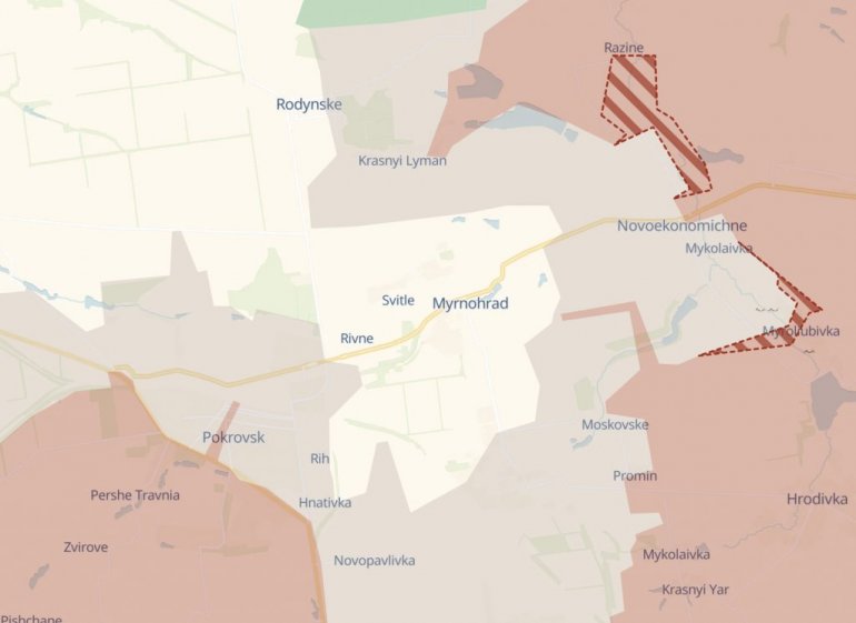 Duboka država (DeepState) medij povezan sa GUR, izveštava da su Rusi napredovali istočno od Mirnograda.