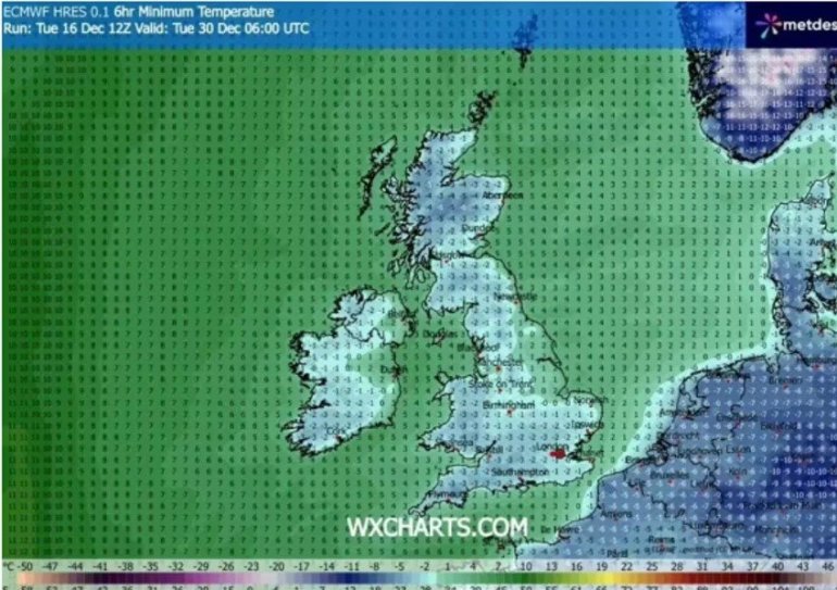 Centralna i severna Škotska mogle bi se probuditi na najhladnije vreme 30. decembra, dok će temperature ispod nule postepeno zahvatiti i Englesku i Vels.