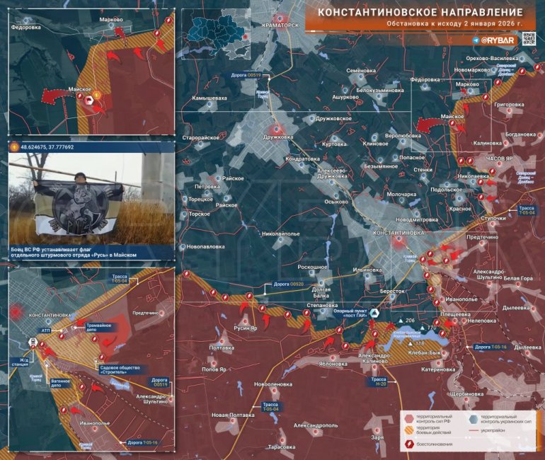 U međuvremenu, u samoj Konstantinovki, ruske jurišne jedinice napreduju dalje unutar gradskih granica. Borci su se približili mostu na putu T-05-04, a borbe se vode na prilazima železničkoj stanici.