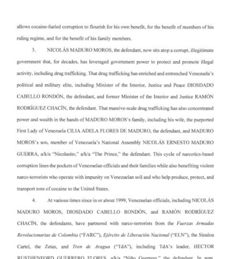 Optužnica je objavljena na 25 strana i povezuje Madura sa gotovo svim mogućim latinoameričkim narko kartelima.