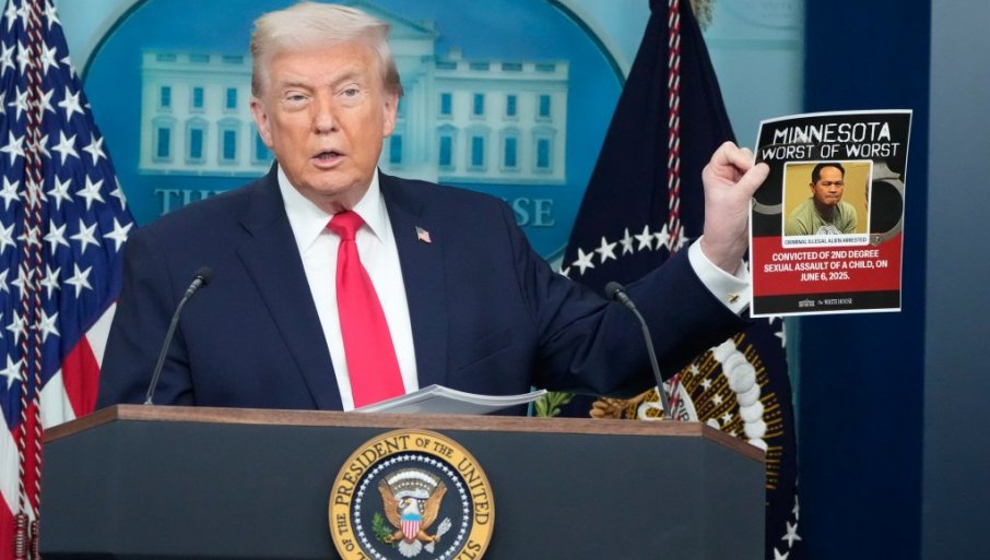 Medijima je takođe pokazao fotografije ljudi za koje kaže da su ilegalni migranti koji su uhvaćeni u Minesoti u akcijama federalnih vlasti.