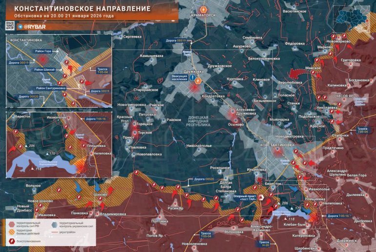 DOK jedinice Južne grupe postepeno opkoljavaju Konstantinovku sa bokova, u centralnom sektoru, jurišni odredi prodiru dublje u naseljena područja grada.