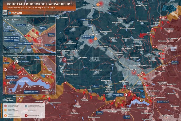 Uprkos kontinuiranom hladnom vremenu, intenzitet borbi u ovom pravcu se povećava, a bitka za Kostjantinovku postepeno eskalira. Neprijatelj pokušava da poveća gustinu svojih snaga u gradu, proces koji je delimično olakšan vremenskim uslovima.