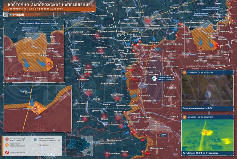 Trenutno, ukrajinske jedinice nastavljaju pokušaje da probiju Sosnovku i Orestopolj, dok je južnije VSU pokušao da se koncentriše u šumskim pojasevima, ali, prema našim podacima, nije uspeo.