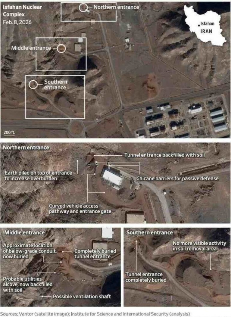 Istovremeno, Iran završava nove projekte utvrđivanja. U vojnoj bazi Parčin podignuta je zaštitna konstrukcija iznad objekta za koji se veruje da je povezan sa nuklearnim programom. Prema satelitskim snimcima objavljenim pre nekoliko dana, završena je velika armiranobetonska ulazna galerija, potom prekrivena debelim slojem zemlje radi dodatnog ojačanja. Ovi radovi povećavaju otpornost objekata na precizne raketne udare i vazdušne napade sa penetracionom municijom.