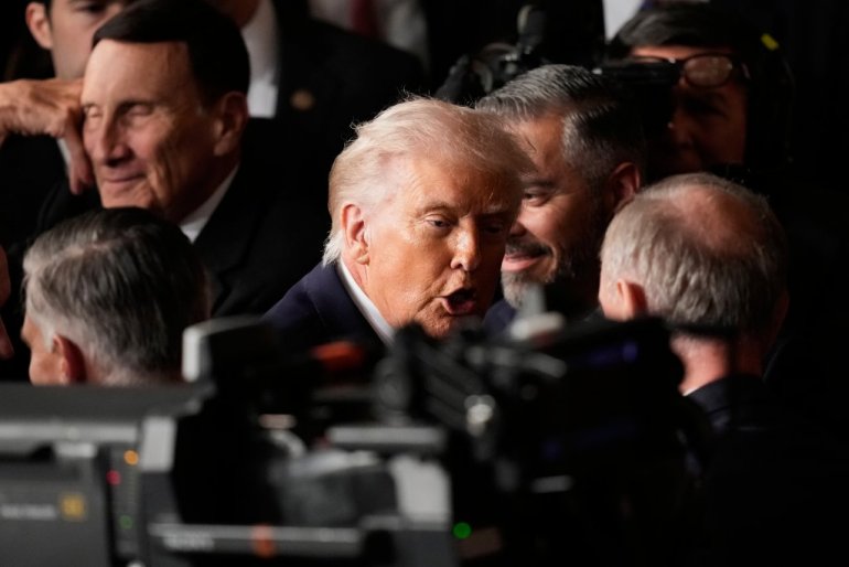 Tokom govora više puta je ulazio u verbalne rasprave sa demokratama u publici, ali nije direktno kritikovao sudije Vrhovnog suda koje su prisustvovale, uprkos njihovoj nedavnoj odluci u vezi sa carinama.