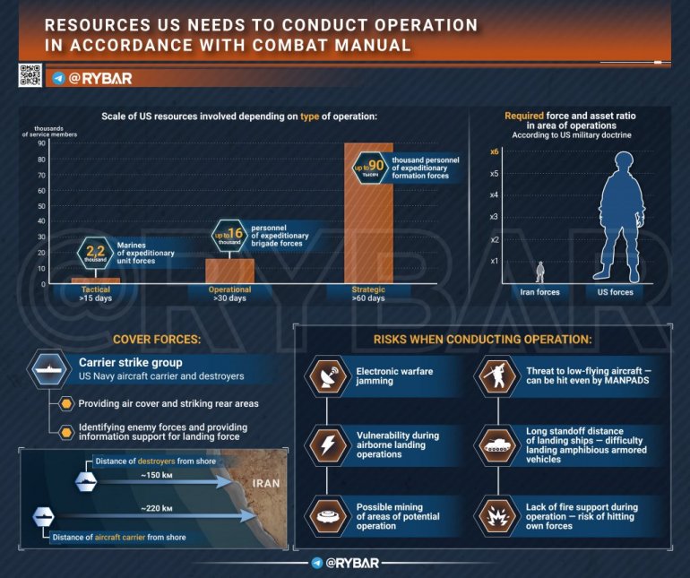 Štaviše, čak i ako desant bude uspešan negde u luci ili vazduhoplovnoj bazi, u slučaju iranskog odmazdnog napada, vazdušna podrška će biti ograničena zbog straha od pogađanja sopstvenih jedinica.