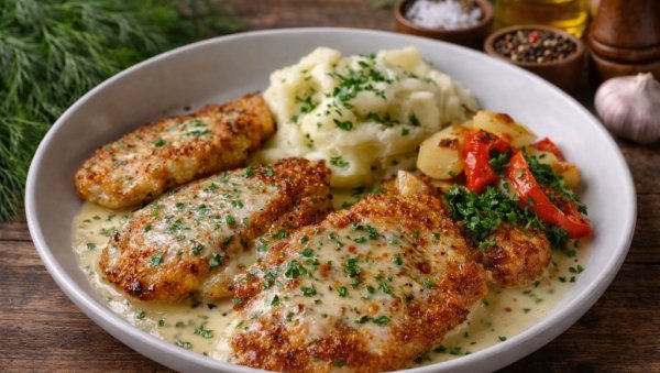 PILETINA PARMEZAN: Hrskava, sočna i u kremastom sosu od belog luka