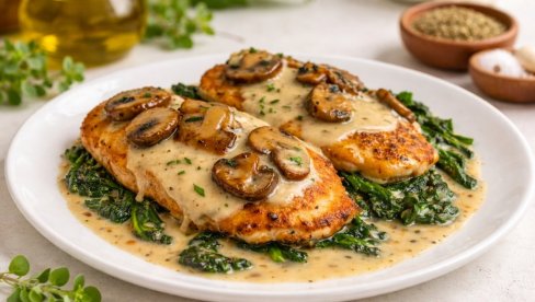 Spoj piletine, spanaća i pečuraka odavno je klasik u kuhinji, ali u ovoj verziji dobija potpuno novu dimenziju. Zahvaljujući kremastom sosu od grčkog jogurta ili krem sira i dodatku parmezana i mocarele, jelo postaje lagano, ali istovremeno bogato ukusom.