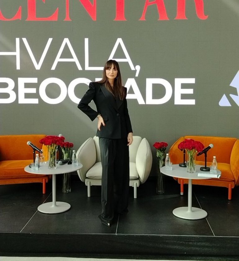 Poznata po dobrom stilu i eleganciji, Emina je i ovog puta opravdala očekivanja. Za ovu priliku obukla je svečano, crno odelo, a stajling upotpunila je tamnim naočarama, kao i cipelama na štiklu koje idu u špic.