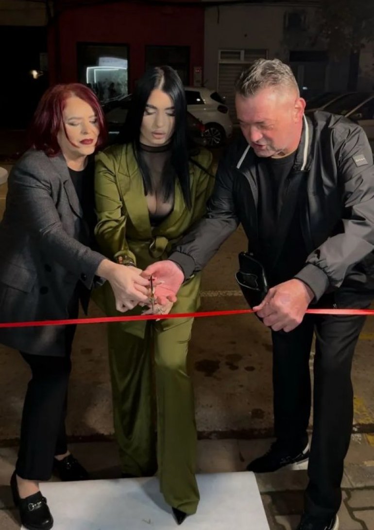 U pratnji maćehe i oca, svečano je presekla crvenu traku, a zatim su zajedno nazdravili za novi početak i uspeh koji predstoji.