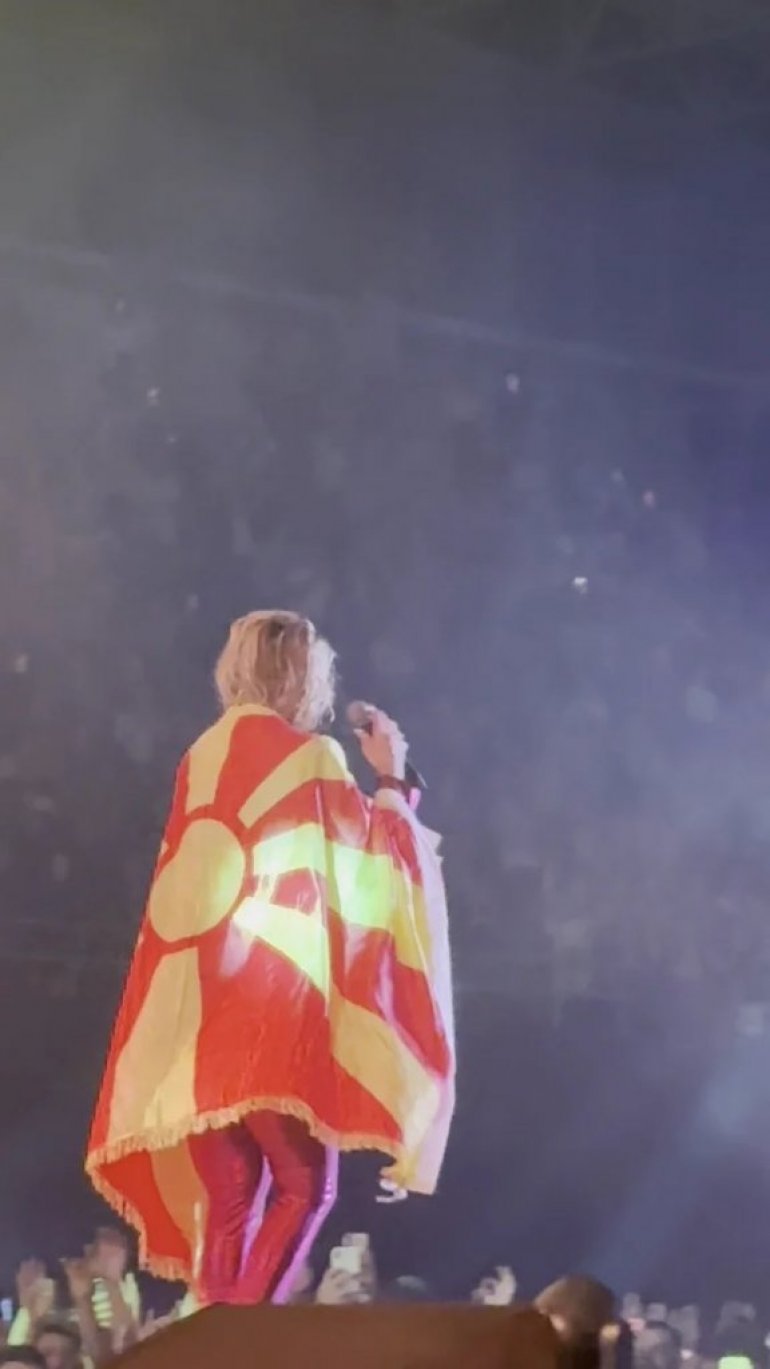 PUBLIKA je Teu Tairović stalno pozdravljala ovacijama, a tokom izvođenja pesme "Makednosko devojče", publika je Tei bacila makedonsku zastavu kojom se ona ogrnula, što je oduševilo celu halu.