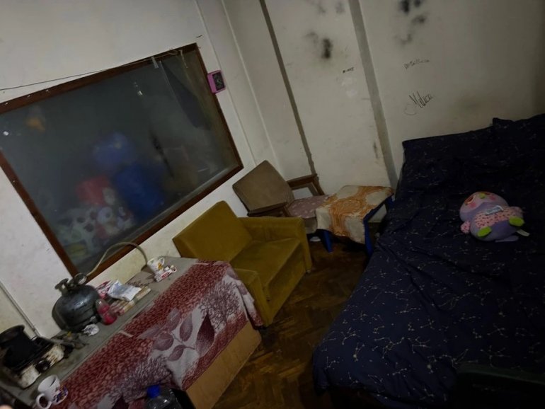 Jedan krevet, improvizovana vrata, bez grejanja, svi u jaknama, ali nasmejani jer je neko uočio njihov problem.