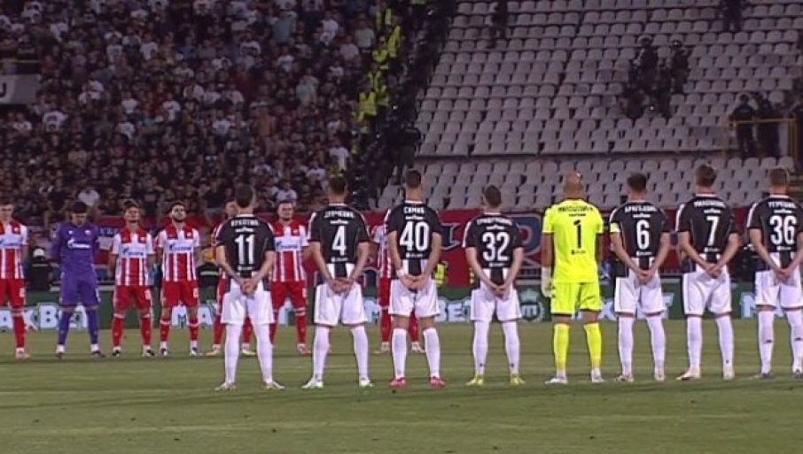 19.01 - Glavni sudija 177. večitog derbija je Nenad Minaković će uskoro dati znak za početak derbija, ali... Najpre, minut tišine zbog naprasne smrti bivšeg Zvezdinog kapitena Milovanovića, koji je premnuo u 41. godini.