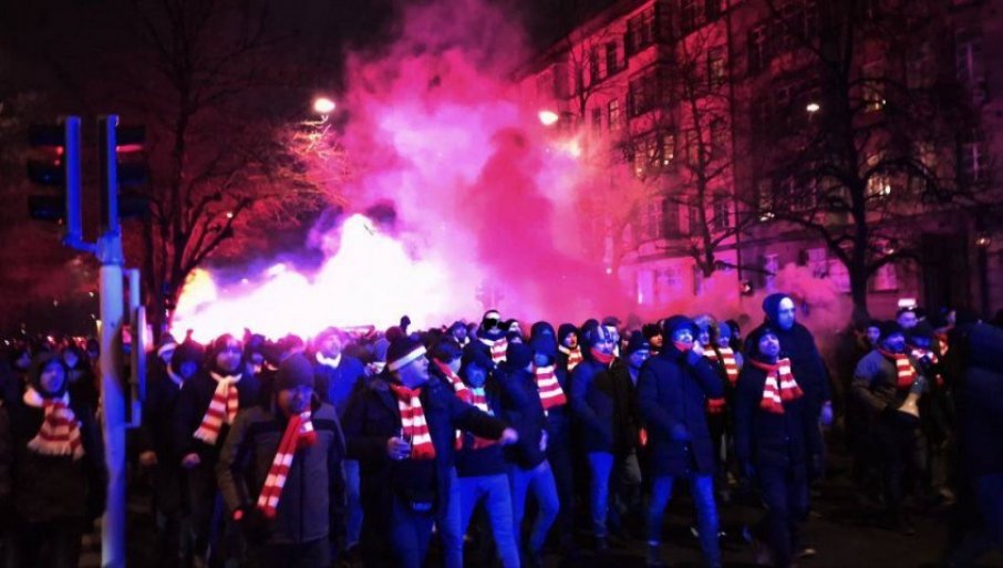 Naime, brojne pristalice srpskog prvaka okupile su se na lokalnom trgu i odatle zajedno, i bučno, krenule na stadion.