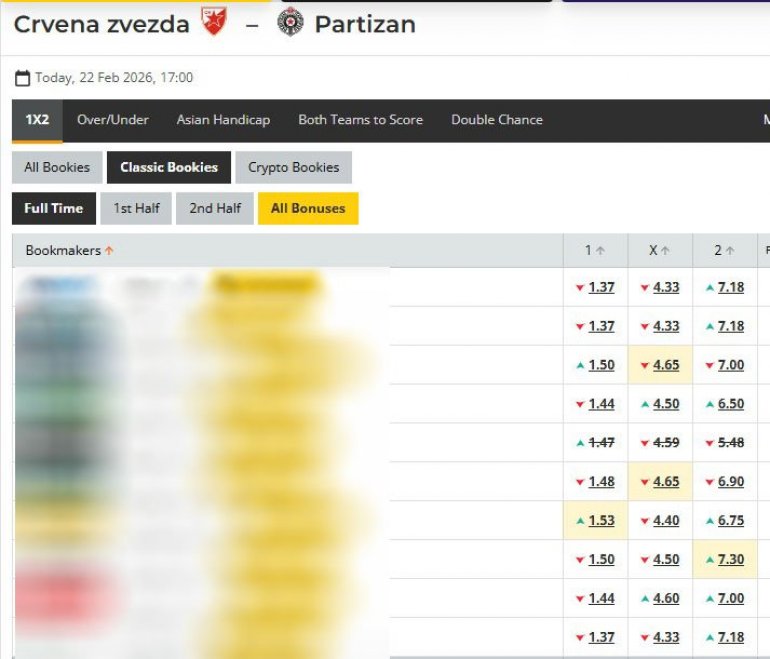 Kvote za 178. večiti derbi, Crvena zvezda - Partizan / Screenshot
