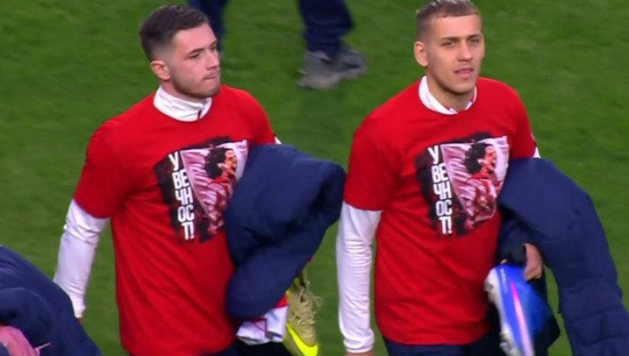 16.57 - Fudbaleri Zvezde su izašli na teren u majicama "Mihajlović u večnost", u znak sećanja na prerano preminulog Sinišu Mihajlovića, legednu Zvezde, srpskog ali i italijanskog fudbala.