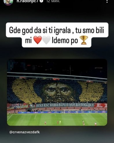 A nakon meča se oglasio Nemanja Radonjić, suspendovani fudbaler Crvene zvezde. Naime, nekoliko minuta posle ponoći, Radonjić je na Instagramu objavio sliku severne tribine sa meča protiv Lila i osim poruke zahvalnosti "delijama" napisao: