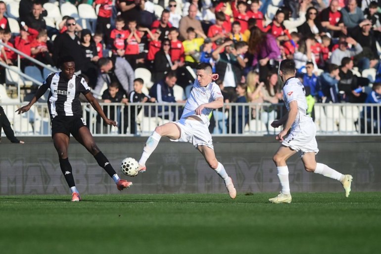 Mogli su domaći i sa većom zalihom od jednog gola da odu na poluvreme. Što nisu, „krivac“ je Andrej Kostić. Najbolji strelac crno-belih je u 22. minutu dozvolio golmanu Topolčana Nikoli Simiću da odbrani njegov šut iz blizine, koji su mnogi već videli kao pogodak.