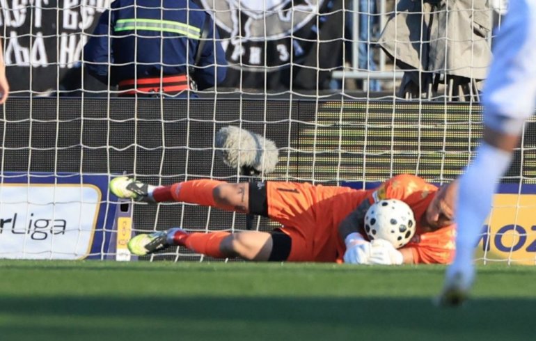 4. minut - Evo i prve intervencije Miloševića, jer je lopta išla u okvir gola. Silovito je šutirao jedan igrač TSC-a.