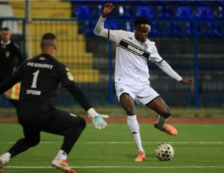 Tek što je kročio na teren u 66. minutu umesto Vanje Dragojevića i preuzeo traku, Bibars Natho je mogao da se proslavi. Iz prve je zahvatio centašute Senegalca i šutirao sa nekih 13 metara u okvir gola, ali je bivši golman Zvezde bio sjajno postavljen i odbranio.